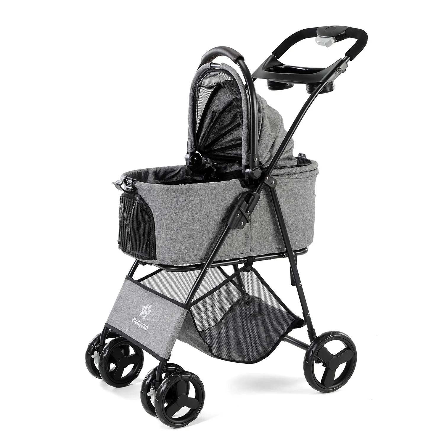 3 in 1 Pet Stroller with Removable Carrier, Folding Stroller for Small/Medium Dogs, Waterproof, All-Terrain, with Sun Screen